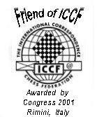 . The Award of Bertl von Massow Medals The yearly applications for this award showed that this distinction was highly appreciated. A Bertl von Massow medal in Gold was awarded to: Olavi Halme (FIN) and Ralph Marconi (CAN) for more than 15 years of meritorious work in the organization of ICCF. Silver medals for more 10 years of meritorious work in organization of ICCF were awarded to Gianni Mastrojeni (ITA) .